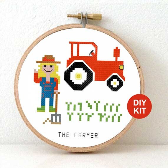 Kreuzstich Traktor Etsy De